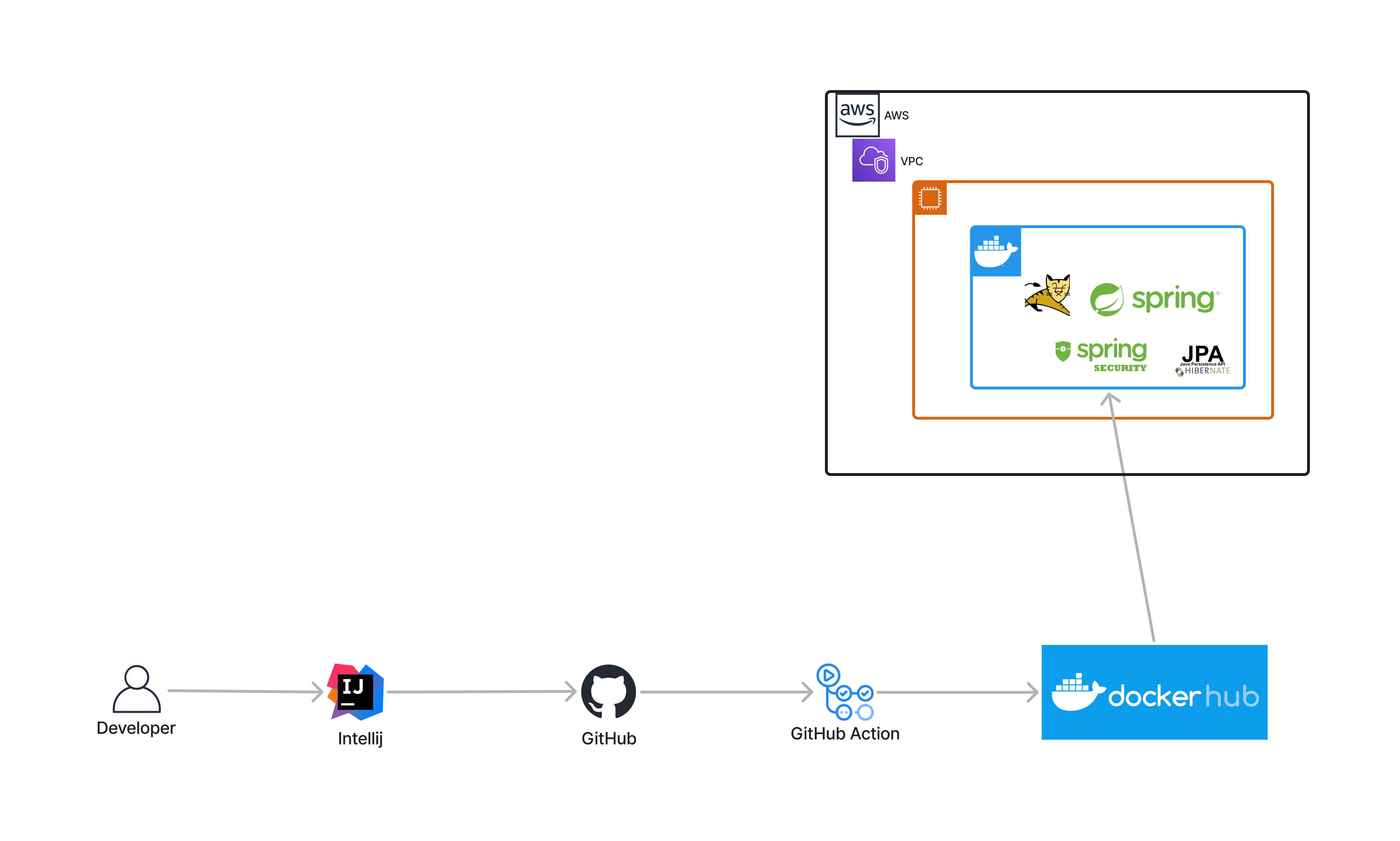 - github action에서 spring 프로젝트를 빌드, tomcat에 넣어 docker 이미지로 빌드