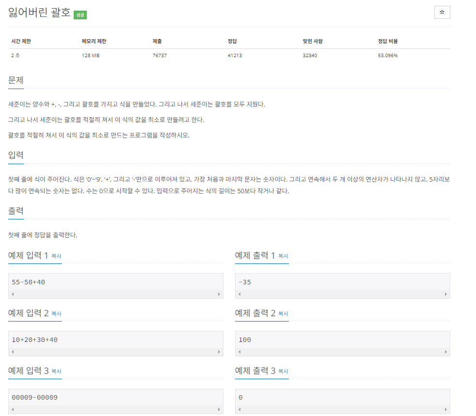 StringTokenizer st = new StringTokenizer(br.readLine(), "-"); //빼기로 분해