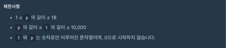 t를 p의 길이만큼 잘게 나누어야하기에 substring으로 나누어야 겠다고 생각하였고